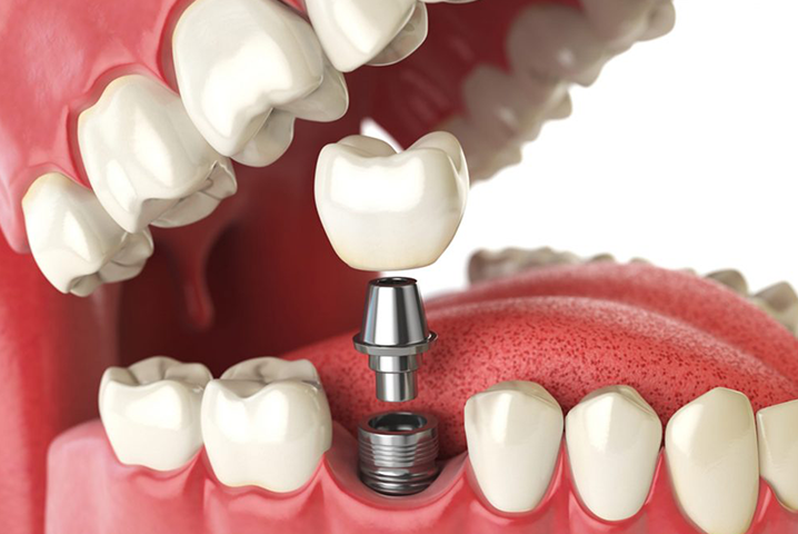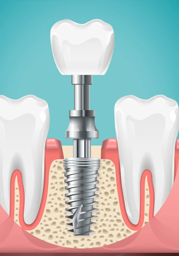 A dental implant is a titanium post surgically placed into the jawbone to replace a missing tooth root. Once healed, a crown, bridge, or denture is attached to the implant, creating a fully functional and natural-looking replacement tooth.
