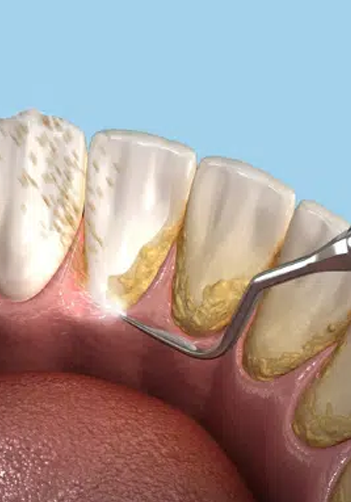 • Scaling: We gently remove plaque and tartar from the teeth and gumline using specialized instruments.